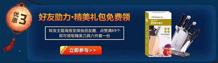 轉發主題海報至微信朋友圈,點贊滿69個,即可領取精美刀具六件套一份。