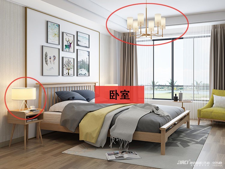 2、在臥室燈具選擇方面,盡量不要選擇水晶燈,也不要把燈安在床的正上方;