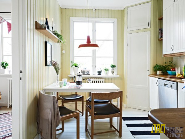 一般說來,圓形餐桌占用面積較大,比較適合在大面積餐廳中使用,而小餐廳較好避免使用。如果餐廳比較小的話則可以使用方桌,這樣會(huì)使餐廳的空間看上去更大一些。